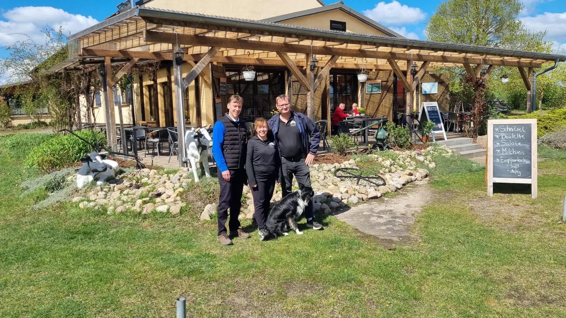 In der „Bunten Kuh“ in Federow wurde Rast gemacht und von den kreativen Eierkuchengerichten gegessen. Man kann nur sagen- sehr empfehlenswert. Mit dem Inhaber Teunus Hoogendoorn wurde die Zeit genutzt um über die bevorstehende Saison zu sprechen.